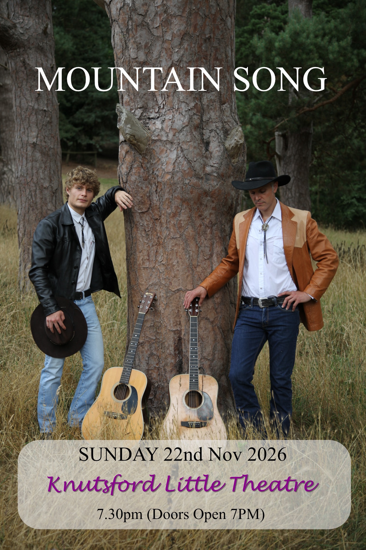 Mountain Song is a hard-driving bluegrass duo bringing the sound of the genre’s golden era back to the stage. Will Greenway and James Hickman deliver tight harmony singing and masterful guitar work, rooted firmly in early Appalachian tradition. Historically accurate and sharply played, this is bluegrass with grit, wit, and real bite.