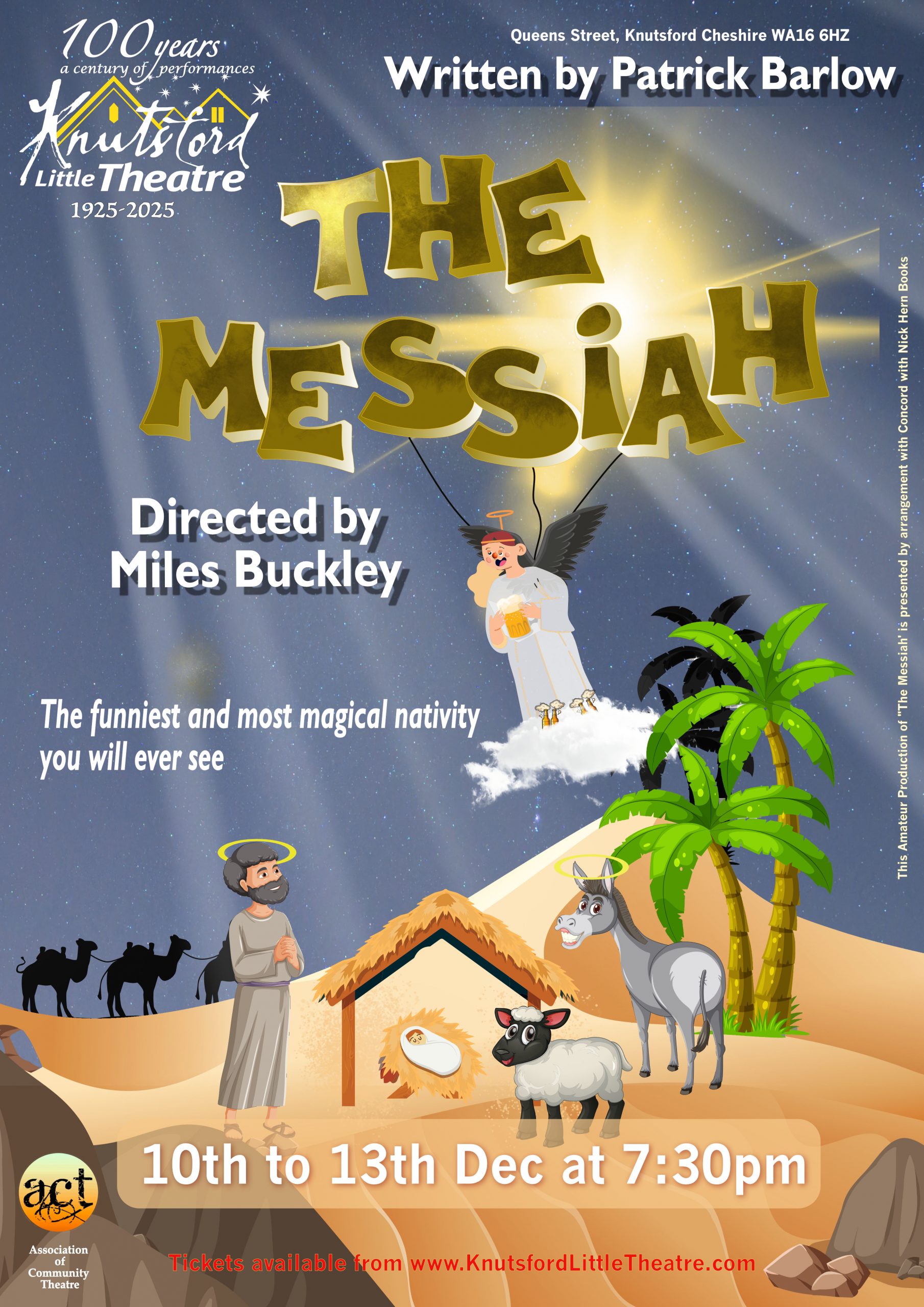 The funniest and most magical Nativity you will ever see. A travelling troupe of two actors and an opera singer arrive by donkey to masterfully, movingly and miraculously enact the greatest story ever told. The troupe play a cast of thousands in a comedy that conjures up the sublime, the ridiculous and the truly angelic.